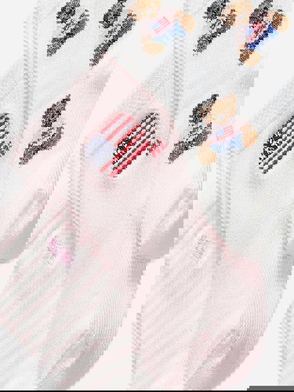 This three-pack of crew socks brings Americana-inspired detail to everyday outfits. Made in soft cotton blends, the set includes a Polo Bear pair with an all-over knit, a flag pair with an American flag and “RL” knit at the outer ankle, and a striped pair finished with the signature embroidered Pony at the outer ankle. Ribbed cuffs complete each pair for a neat finish.