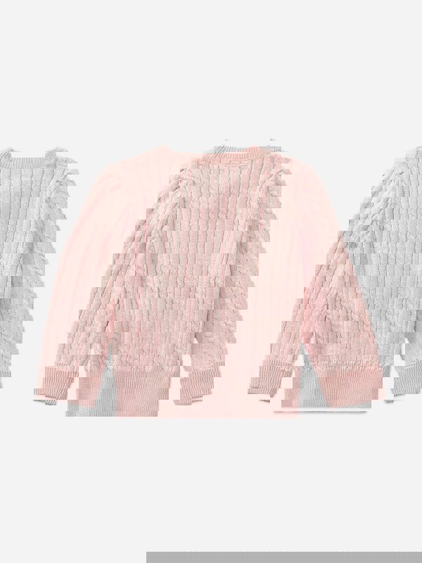 This baby girls cardigan by Ralph Lauren Kids comes in a delicate pink shade with a classic cable knit design. A simple layer for adding to an outfit, it suits a range of occasions and seasons.