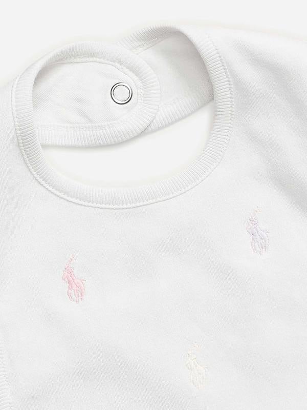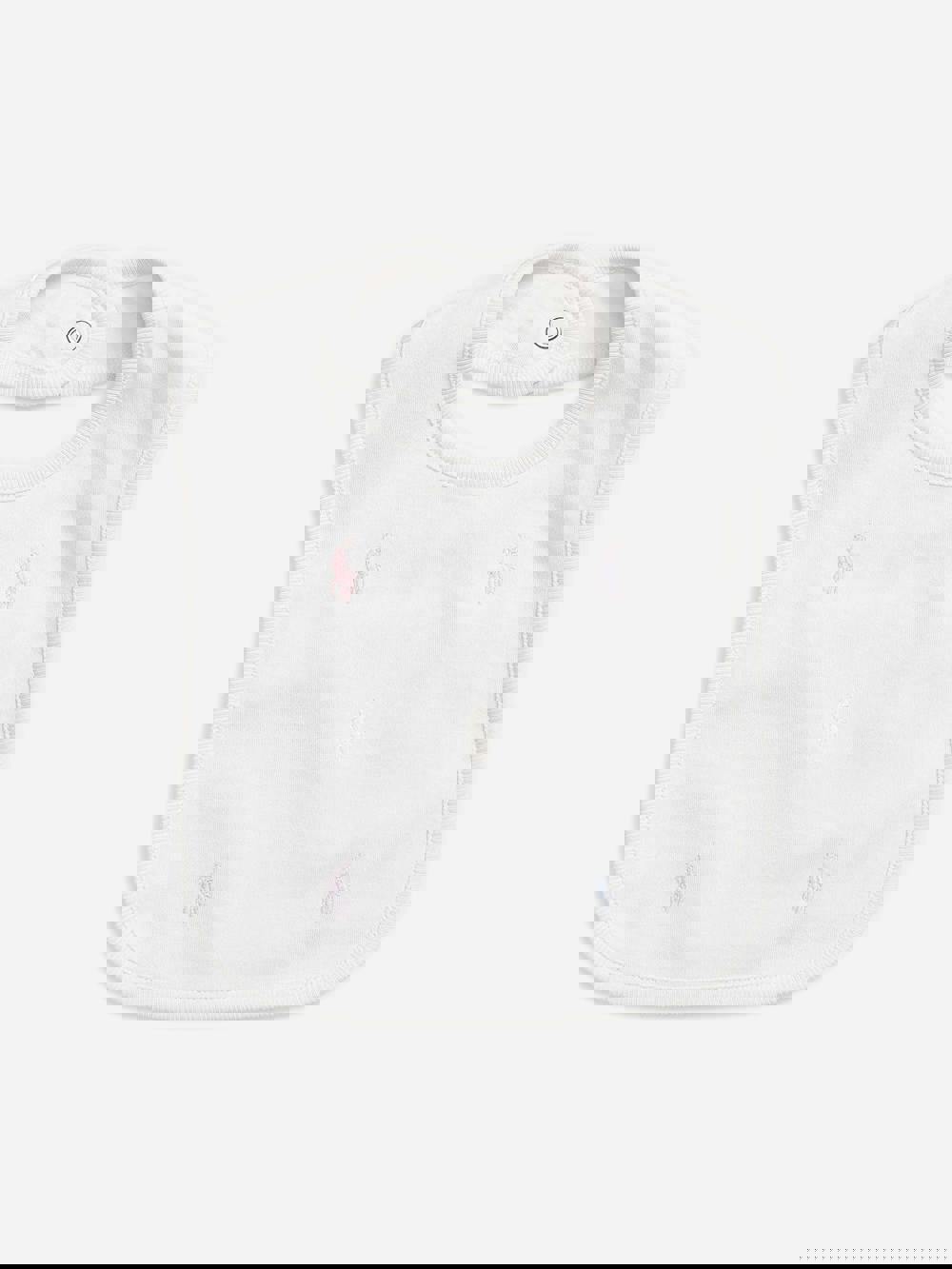 From Ralph Lauren Kids, the Baby Girls Logo Bib brings a polished finish to everyday mealtimes. Designed in white with a lively pink logo print, it adds a considered touch to your baby girl’s nursery essentials while keeping her look neat and coordinated.