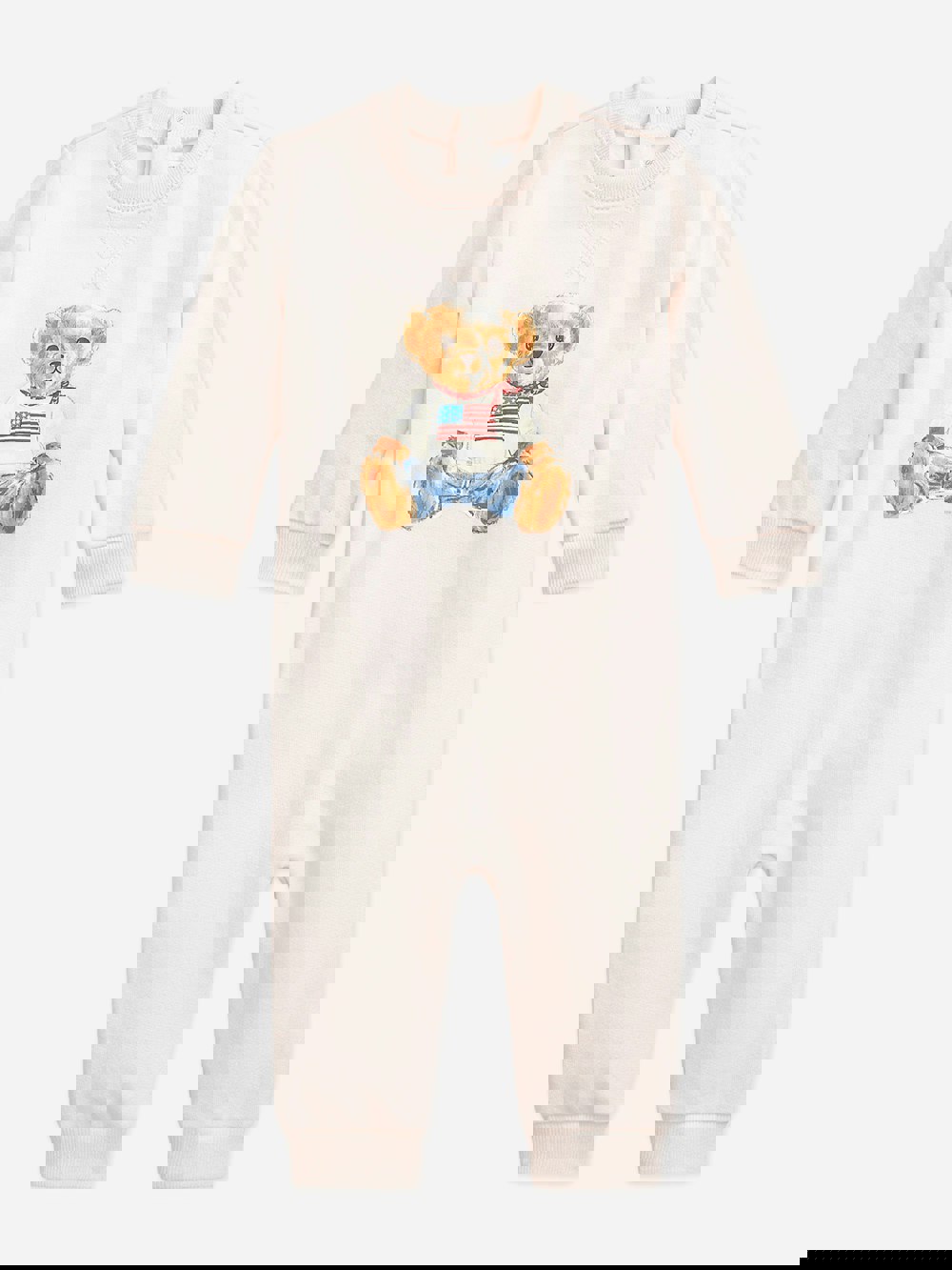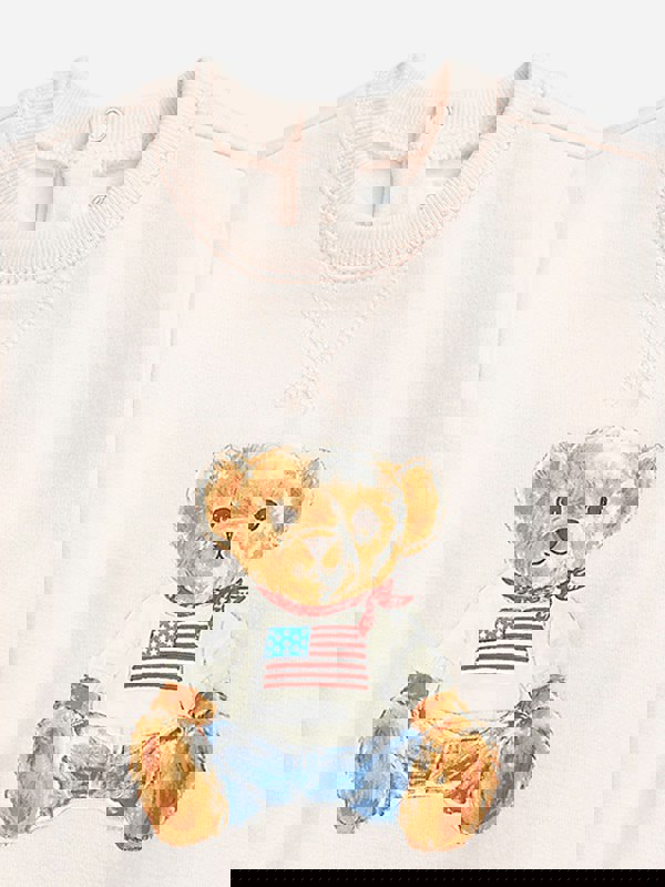This baby girls romper by Ralph Lauren Kids comes in pink with the iconic Polo Bear motif. A nonseasonal piece, it brings a classic Ralph Lauren character to a simple one-piece style.