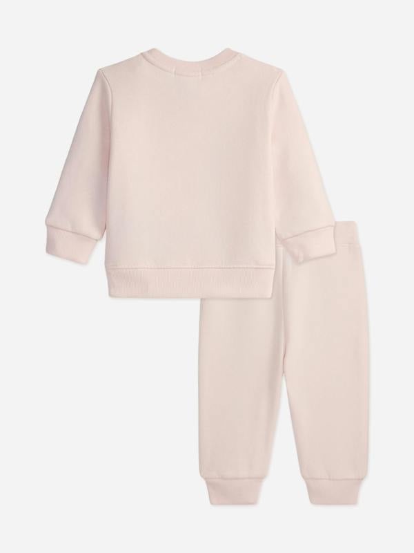 The sweatshirt has a round neck and long sleeves, with press stud fastenings for easy dressing. A Polo Bear motif appears on the front in a signature RL look. The coordinating bottoms have an elasticated waistband and ribbed details to complete the set.