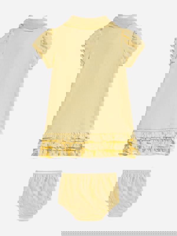 This Ralph Lauren Kids baby girls ruffle polo dress comes in yellow and forms part of the SS2026 collection. It combines a classic polo cut with delicate ruffle detailing for a playful finish.
