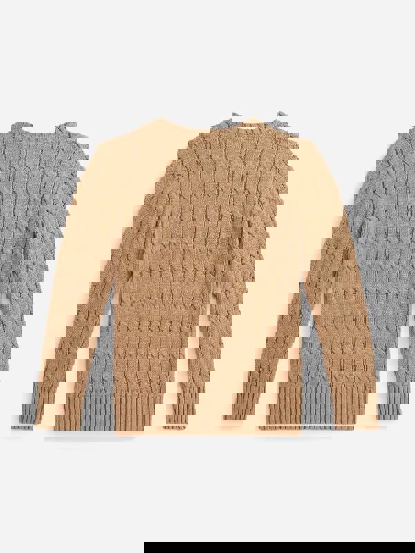 This Ralph Lauren Kids cable knit jumper comes in camel heather for a classic look with a clean, unisex finish. Made from 100% cotton, it has a soft knit handle and a traditional round neckline. Long sleeves and a pullover shape keep the design simple, while the embroidered logo adds a recognisable Ralph Lauren detail.