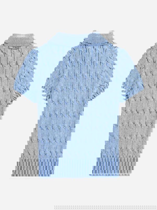 Introducing the exquisite Ralph Lauren Boys Cable Knit Polo Top in a captivating blue, essential for SS2026. Crafted with exceptional finesse, this piece is an epitome of both comfort and style. Key features include: