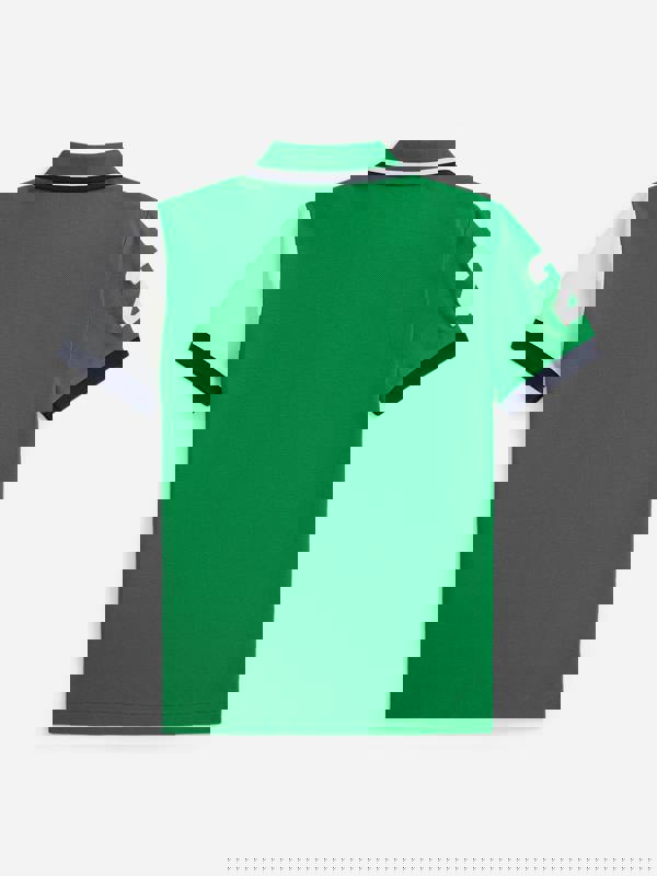 Ralph Lauren Kids updates its timeless American image by combining modern technology with vintage archives. This boys polo shirt comes in cruise green with a colourblock design and a diagonal border for a bold, graphic finish. An embroidered Polo Bear and number 2 add a signature detail, while the collar and short ribbed sleeves keep the look classic and neat.