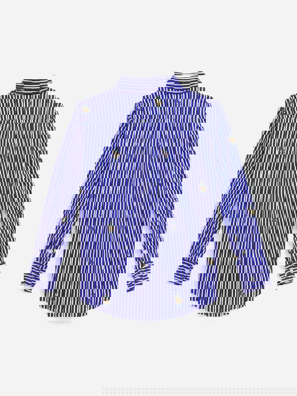 This Ralph Lauren boys’ shirt comes in blue with a stripe pattern and an Equestrian Bear motif. A classic wardrobe piece with signature Ralph Lauren character, it suits a range of looks from everyday outfits to smarter occasions.