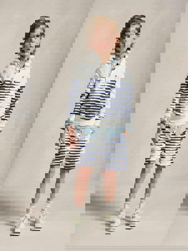 Ralph Lauren Kids boys striped half zip sweatshirt in white for SS2026. The design combines a white base with bold stripes and a half zip fastening.
