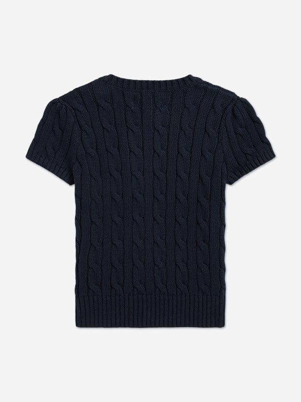 Discover the elegance of the Ralph Lauren Girls Cable Knit Pullover in Navy. This sumptuous knitwear is a timeless addition to any young lady's wardrobe, blending classic style with cosy warmth. Perfect for chilly days and stylish occasions, it is crafted with meticulous attention to detail.