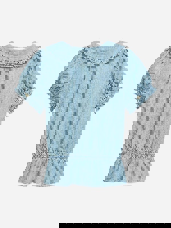 This Ralph Lauren Kids blouse reflects the brand’s American lifestyle and distinctive craftsmanship. Made from 100% cotton, it comes in a light blue, medium wash finish with short puff sleeves for a defined silhouette.