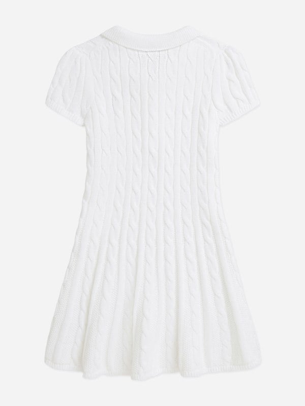 This Ralph Lauren Kids girls dress comes in white with a classic cable knit pattern. Made from 100% cotton, it offers a soft feel for comfortable wear throughout the day. The clean, plain colour and textured knit give it a timeless look that suits a range of occasions.