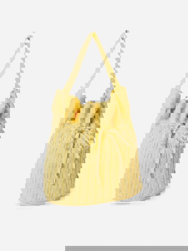 Inspired by New England’s effortless coastal charm, the Mini-Cable Drawstring Bucket Bag is a compact style designed for everyday essentials. Finished in yellow with a mini-cable pattern, it brings a distinctive textured look to outfits while keeping belongings neatly gathered.