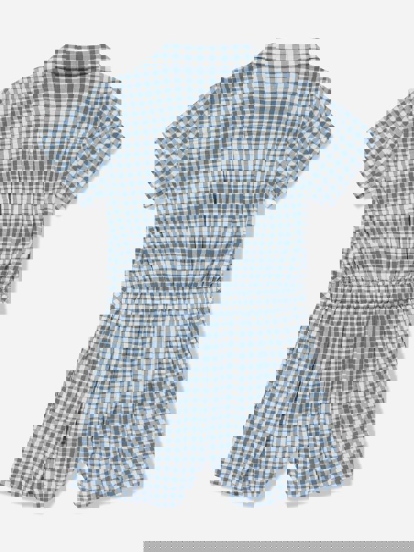 This Ralph Lauren Kids playsuit for girls comes in a blue gingham pattern with a classic Ivy League look. It has a V-neck collar and short sleeves, finished with a pearlescent button fastening through the front. Side pockets and a pleated effect complete the silhouette.