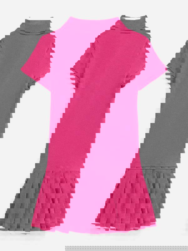 A pleated skirt completes the silhouette, keeping the look neat and structured while staying true to the polo dress shape.