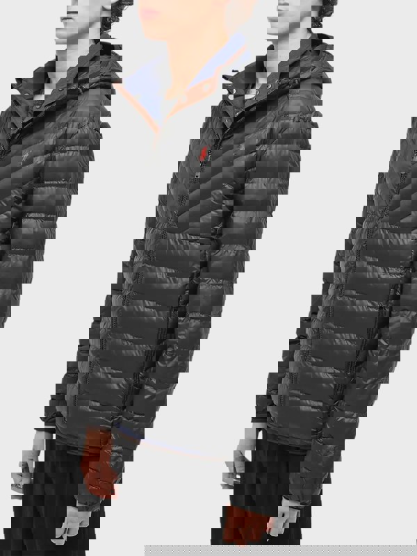 Elevate your cold-weather wardrobe with this distinguished Polo Ralph Lauren Terra Chevron Insulated Hooded Jacket in classic Polo Black.