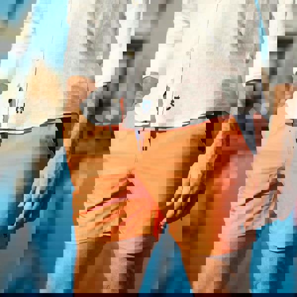 These coral swim shorts themselves are made from 90% recycled polyester and 10% spandex, allowing a stylish yet extremely comfortable fit - as well as quick drying with a comfy cotton mesh lining. There is a loop on the rear to hang the red swimming trunks and aid in the drying process.