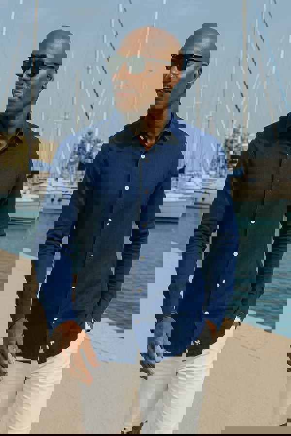 Meet the Navy Linen Shirt, where classic tailoring meets effortless summer cool. Crafted from our signature organic lightweight linen-cotton blend, this shirt delivers the breathability you need with the sharp structure you want. Whether you're strolling along a marina, heading to a rooftop dinner, or pretending you “just threw this on,” the Midnight Breeze has your back.