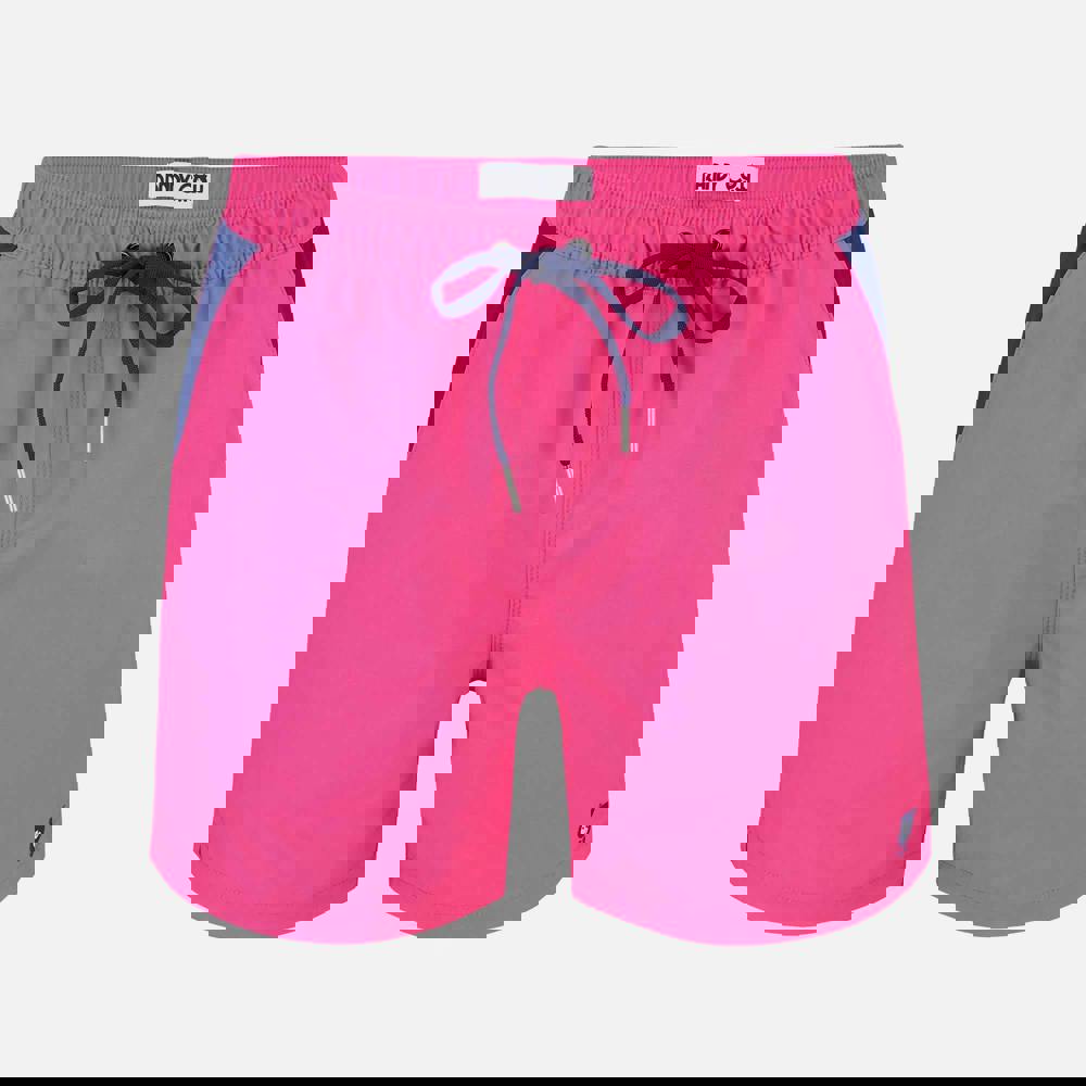 These pink swim shorts themselves are made from 90% recycled polyester and 10% spandex, allowing a stylish yet extremely comfortable fit - as well as quick drying! They are equipped with a waterproof pocket which will keep your belongings safe and dry up to 30m and a soft and comfy cotton mesh lining. There is a loop on the rear to hang the pink swimming trunks and aid in the drying process.