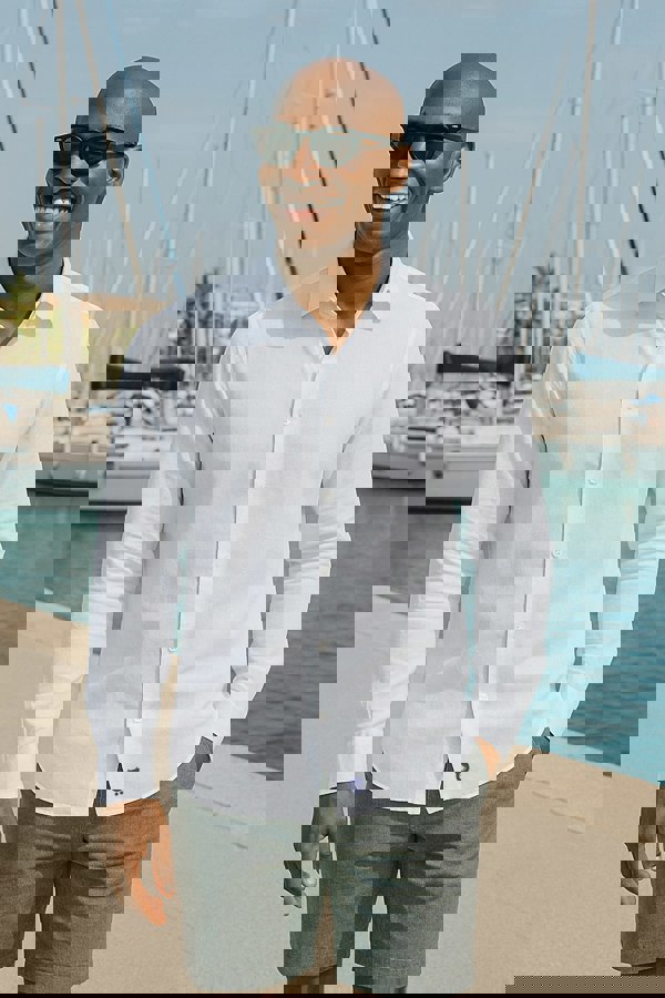 Clean, crisp, and cooler than an ocean breeze — say hello to The White Sands, our classic white linen shirt designed for the man who likes to look effortless without ever trying too hard. This is the ultimate summer essential: light, airy, and sharp enough to take you from beach bar to boat deck to late-night dinner without missing a beat.