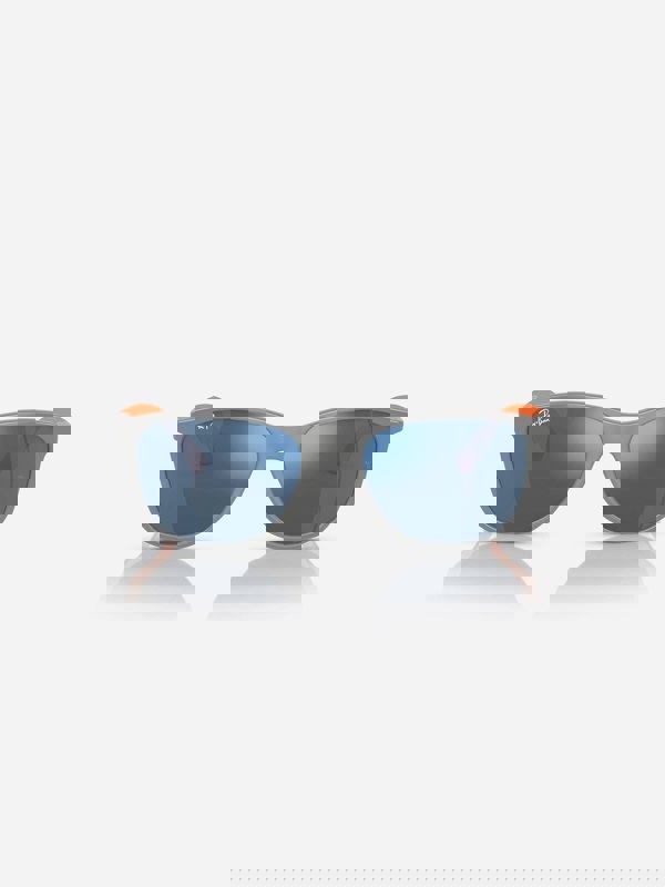 These Ray-Ban kids bio-based sunglasses in grey draw on vintage archives with a classic square shape inspired by designs from the 1930s. Designed for everyday wear, they feature a light grey and orange contrast frame paired with transparent blue lenses for a distinctive look.