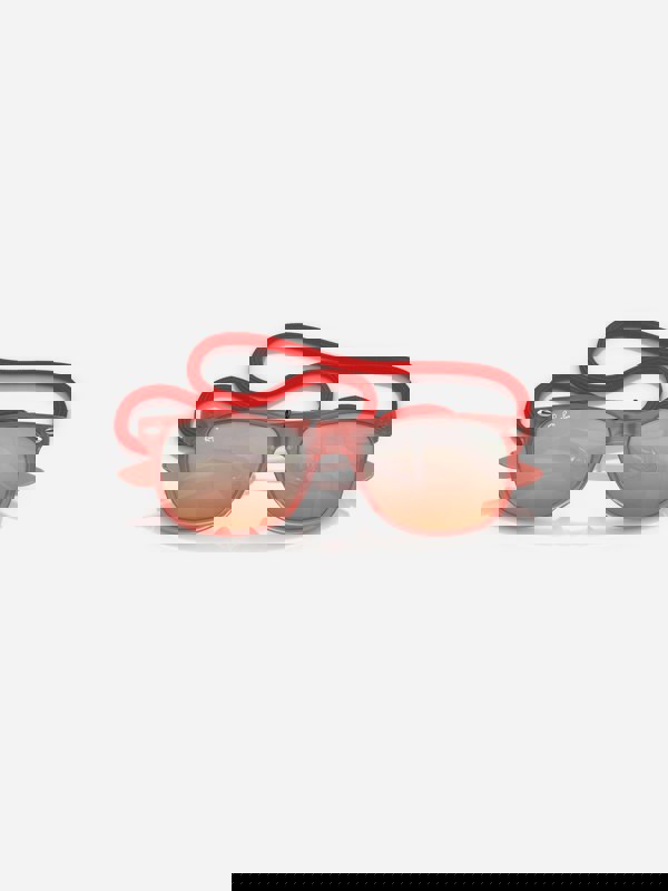 Finished with a polished opal red frame, this pair features orange gradient mirror lenses for a bold, summery feel. Designed for younger wearers, they offer 100% UV protection and come with a cord for added practicality.