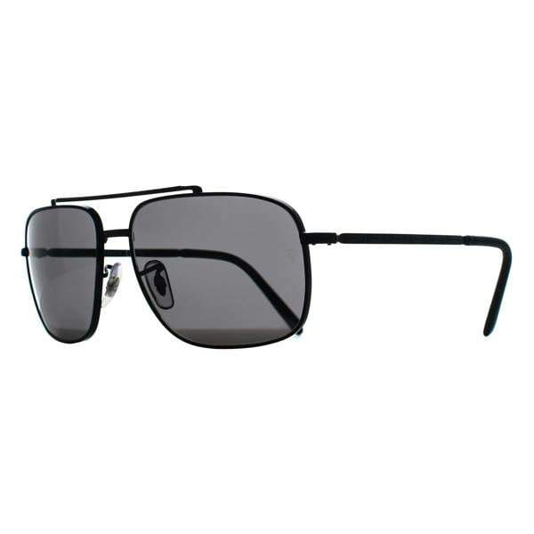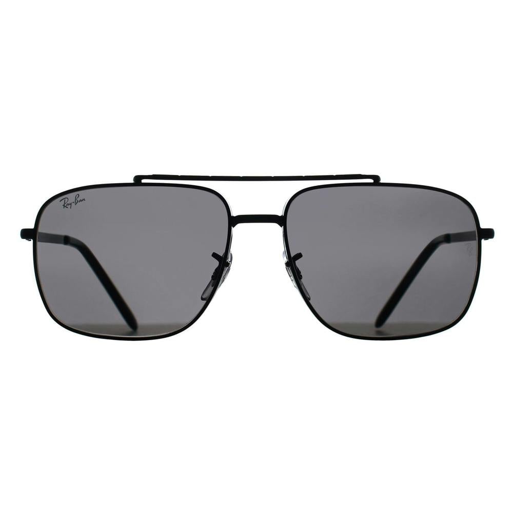 A modern take on a navigator profile, Ray-Ban RB3796 002/B1 sunglasses pair a polished black metal frame with dark grey lenses for a clean, graphic finish. The square-navigator silhouette is defined by a distinctive double bridge, bringing extra structure to the front while keeping the overall look streamlined and contemporary.