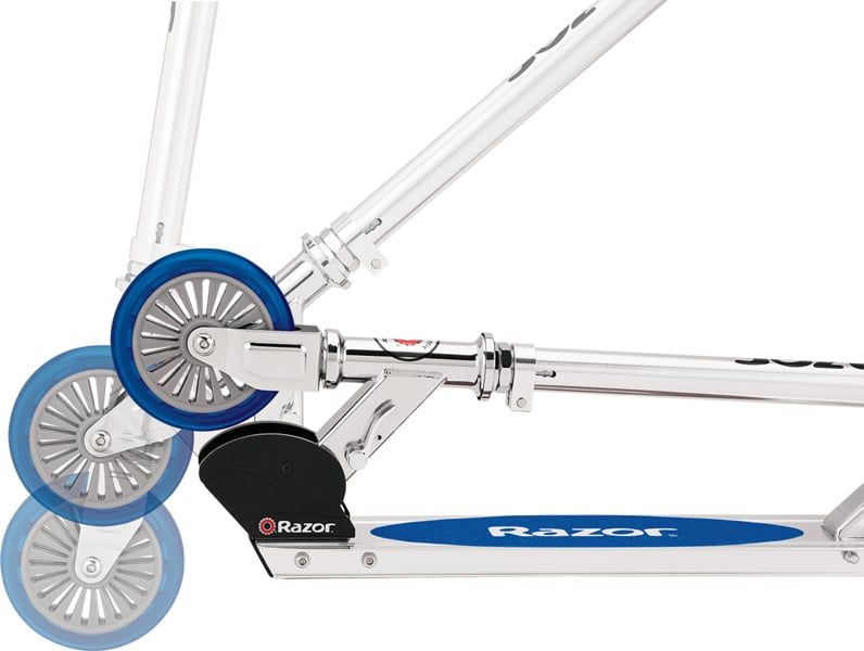 Provide young riders with a safe and reliable introduction to scooting with the Razor A125 Scooter, presented in a cool blue colour with GS graphics. This model updates the timeless original Razor scooter design for children aged 5 and up, combining classic appeal with certified safety. Crucially, it holds GS certification, signifying compliance with rigorous European safety standards, offering parents added confidence. It features the lightweight yet robust aircraft-grade aluminium t-tube and deck that made the original famous, alongside the practical patented folding mechanism. Ready to go straight from the box, it requires no assembly.
