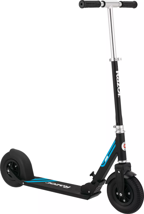 Built with a sturdy, lightweight aluminium frame, the Razor A5 Air Scooter is both durable and easy to manage. Rider comfort is further enhanced by easy-adjust handlebars, allowing users of various heights to find their optimal riding position. Furthermore, the scooter features Razor’s anti-rattle technology in the handlebars and folding mechanism, ensuring a quiet and stable ride without distracting noises. For convenient stops, a full-deck rear fender brake provides reliable control. The efficient folding system makes this scooter simple to carry and store, perfect for multi-modal travel or saving space at home.
