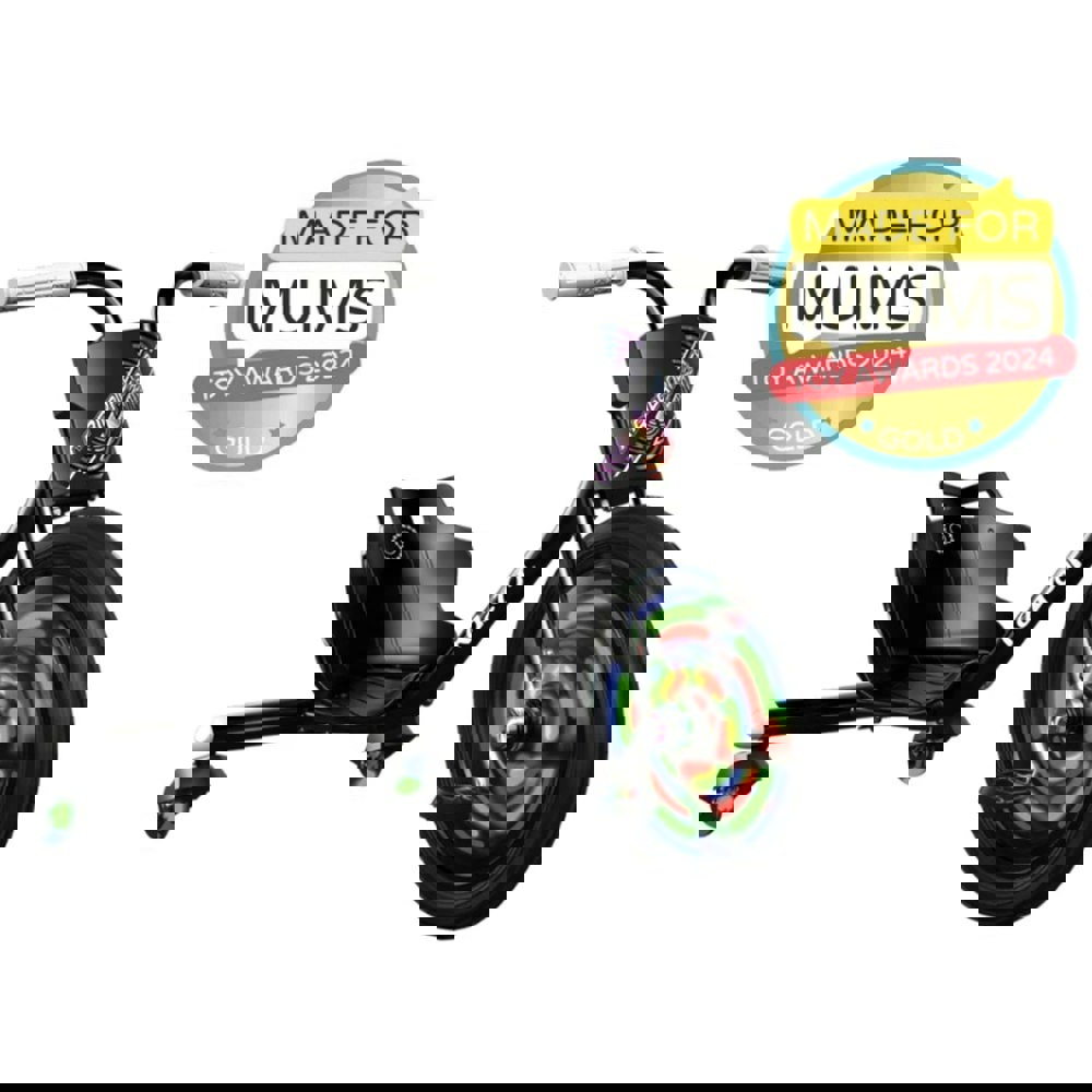 Experience classic three-wheeled fun with a pedal-powered trike that brings spins, drifts, and a dazzling light show. Designed for riders aged 5 years and up, the RipRider 360 Lightshow combines durability, active play, and visual excitement. Its low-to-the-ground design ensures stability, while dual rear caster wheels enable smooth 360-degree spins. Motion-activated, multi-colour LED lights embedded in the rear wheels create an eye-catching effect for day or night riding.