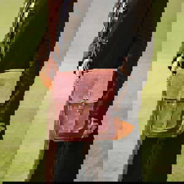 Real Hide Bags 'CAROLYN' Plum Distressed Real Leather iPad Tablet Crossbody Bag