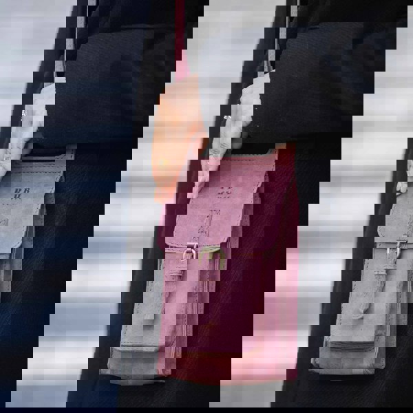 Introducing 'Myla', a lightweight and adjustable plum distressed leather phone crossbody bag. Perfect for a hands-free lifestyle, it features a tab over flap, a slip pocket and zip pocket for your essentials, and a convenient adjustable shoulder strap for comfortable carrying. Make everyday easier with 'Myla'.