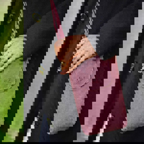 The 'Thea' mobile phone crossbody bag is an elegant and practical mobile phone crossbody bag crafted from vintage plum distressed genuine leather. Magnetic closure and a flap design give effortless and secure access, while its adjustable shoulder handle allows you to customize the fit. Perfect for your everyday needs!