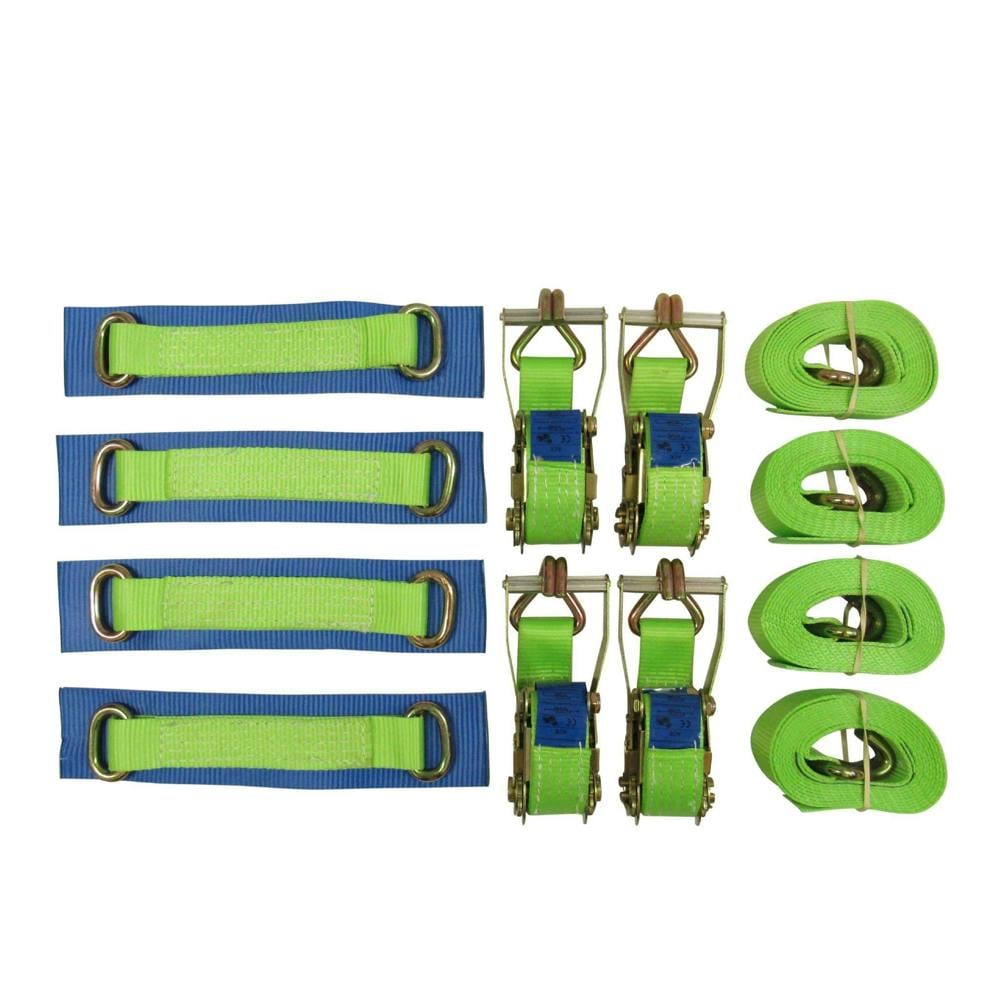 Kit : 4 - High Vis Ratchet Handles, 4 - High Vis Long Ends With Claw Hooks, 4 - Oval Link High Vis Straps