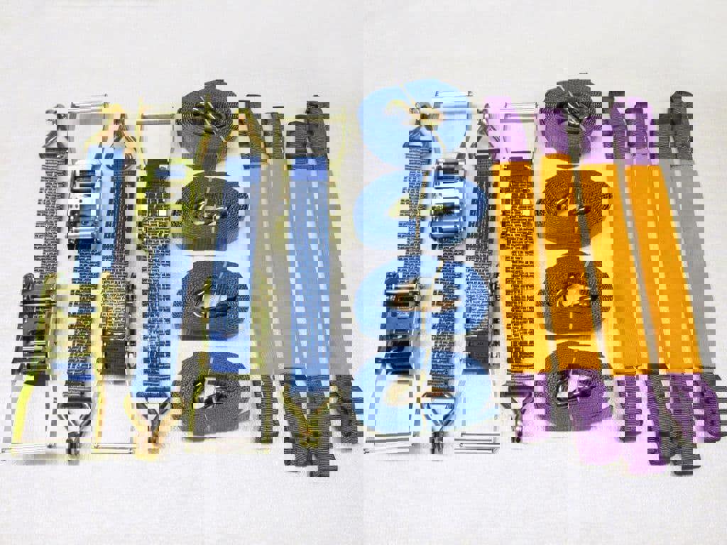 Kit : 4 - Ratchet Handles, 4 - Long Ends With Claw Hooks, 4 - Round Slings