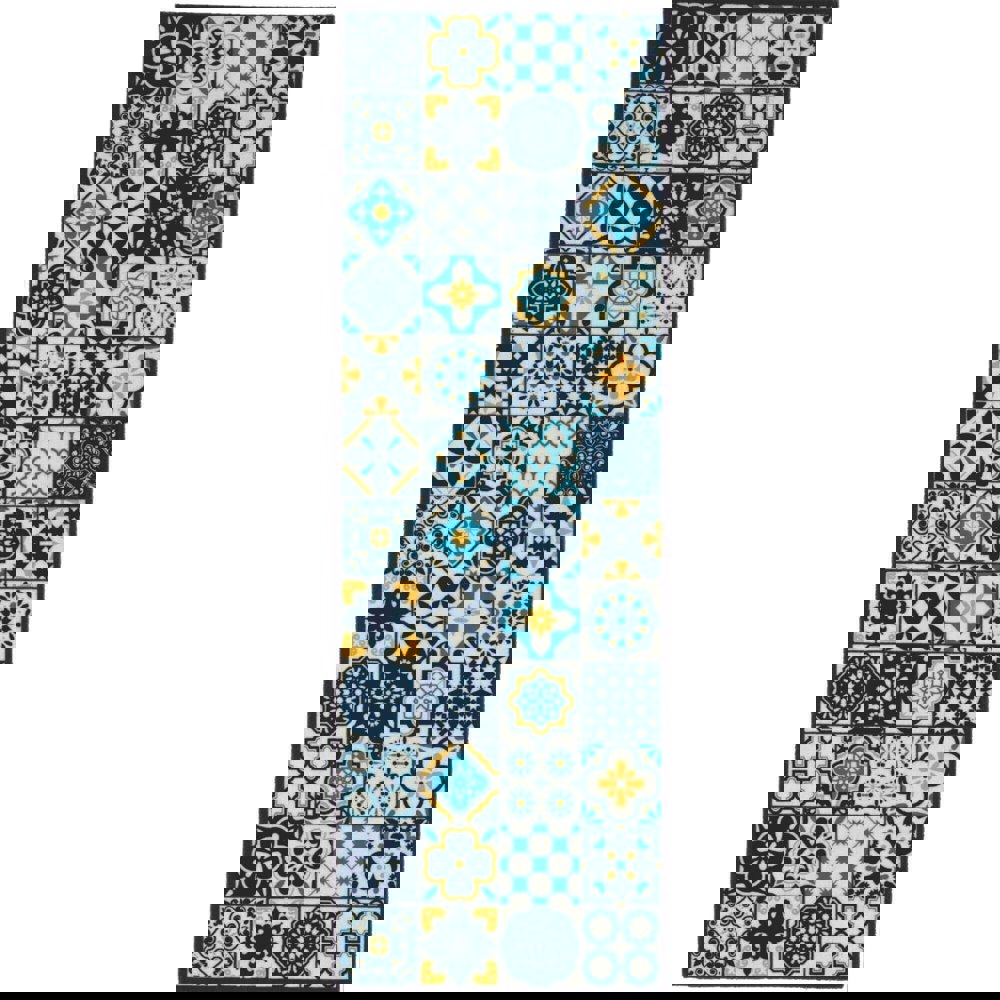 Bring a fresh, functional touch to your hallway or kitchen with the Recycled Patchwork Duck Egg Blue Runner. Designed to protect your floors, it adds a contemporary, patterned accent to your space.