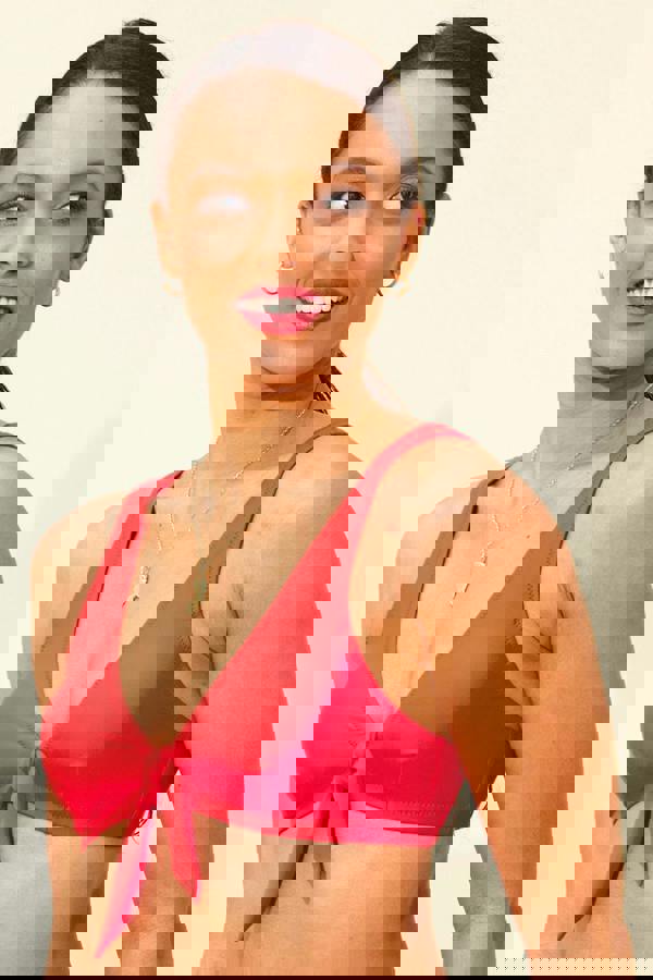 In a vivid red finish, the Red Bow Front Plunge Bikini Top brings a bold look to mix and match swimwear styling. This plunge bikini top is finished with an eye-catching bow detail at the front, creating a defined focal point while keeping the silhouette clean and modern.