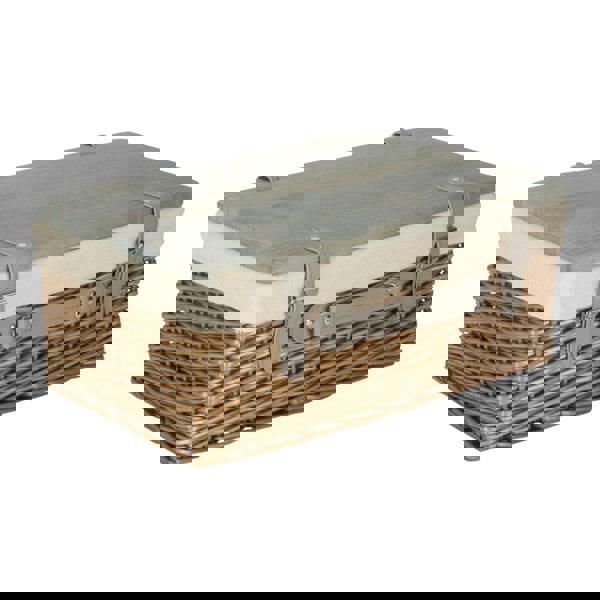 Red Hamper Antique Wash White Lined Willow Picnic Basket with Pinewood Lid
