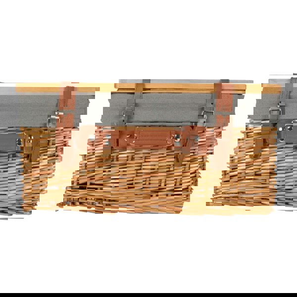Double Steamed Grey Lined Willow Picnic Basket with Pinewood Lid