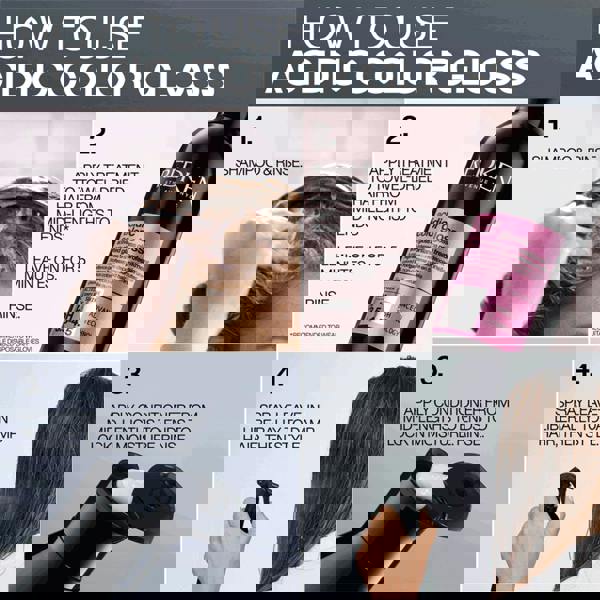 Step 1: Apply Acidic Color Gloss Shampoo to wet hair, lather and rinse. The formula is sulphate-free to allow for gentle cleansing.