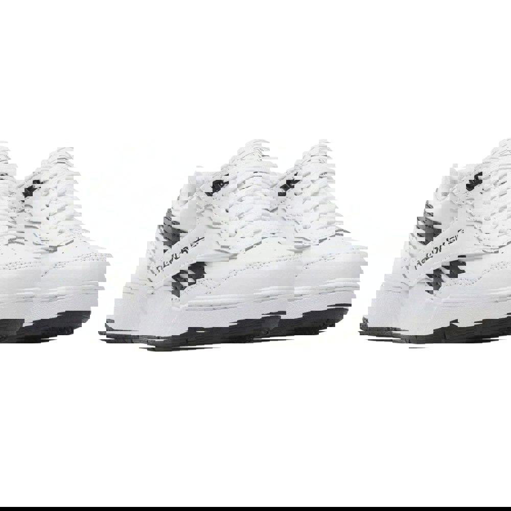 Reebok BB 4000 II leather trainers for children in white and black. The low-cut shape sits flat to the ground and fastens with lace-up closure. A round toe completes the classic trainer profile, while contrast detailing and logo branding add a defined finish.