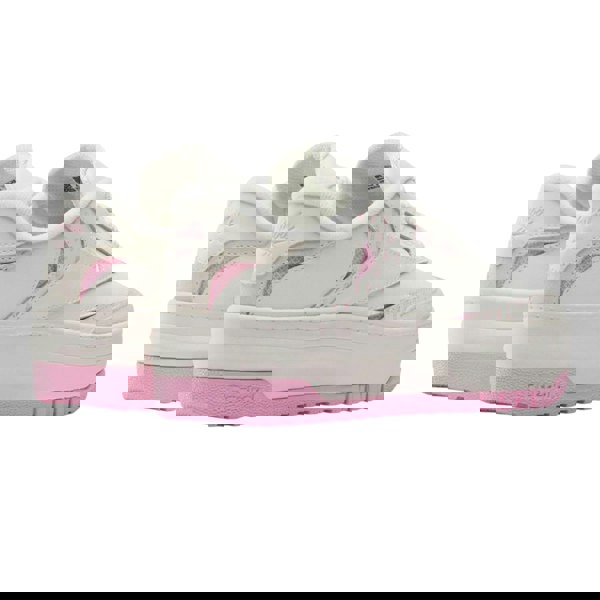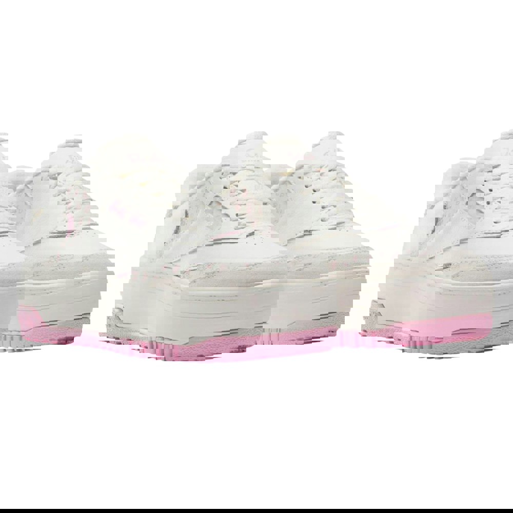 Reebok Childrens/Kids X Barbie Club Leather Trainers in white and pink with a low-cut profile and flat sole. The upper combines leather and mesh, finished with contrast detailing and logo branding. A round toe and lace-up fastening complete the streamlined shape, with a regular fit for everyday wear.