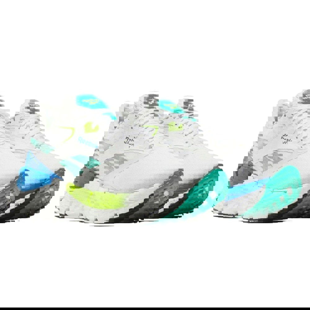 Reebok FloatZig Symmetros trainers combine synthetic and textile uppers with a low-cut profile and a round toe. The lace-up fastening runs through eight eyelets for a secure, adjustable fit, while contrast detailing and logo branding complete the look.