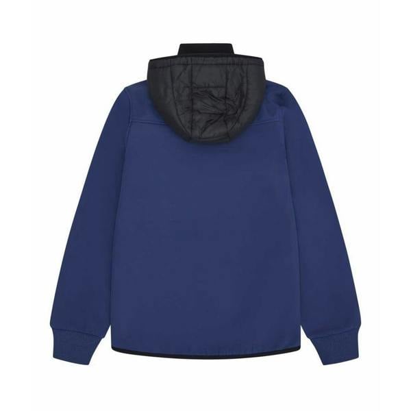 This Reebok mixed media jacket is made from a softshell fabric with a plain finish and logo detail. The hooded neckline includes a drawcord and a sew-on hood for adjustable coverage, while long sleeves and ribbed cuffs keep the shape clean and defined.