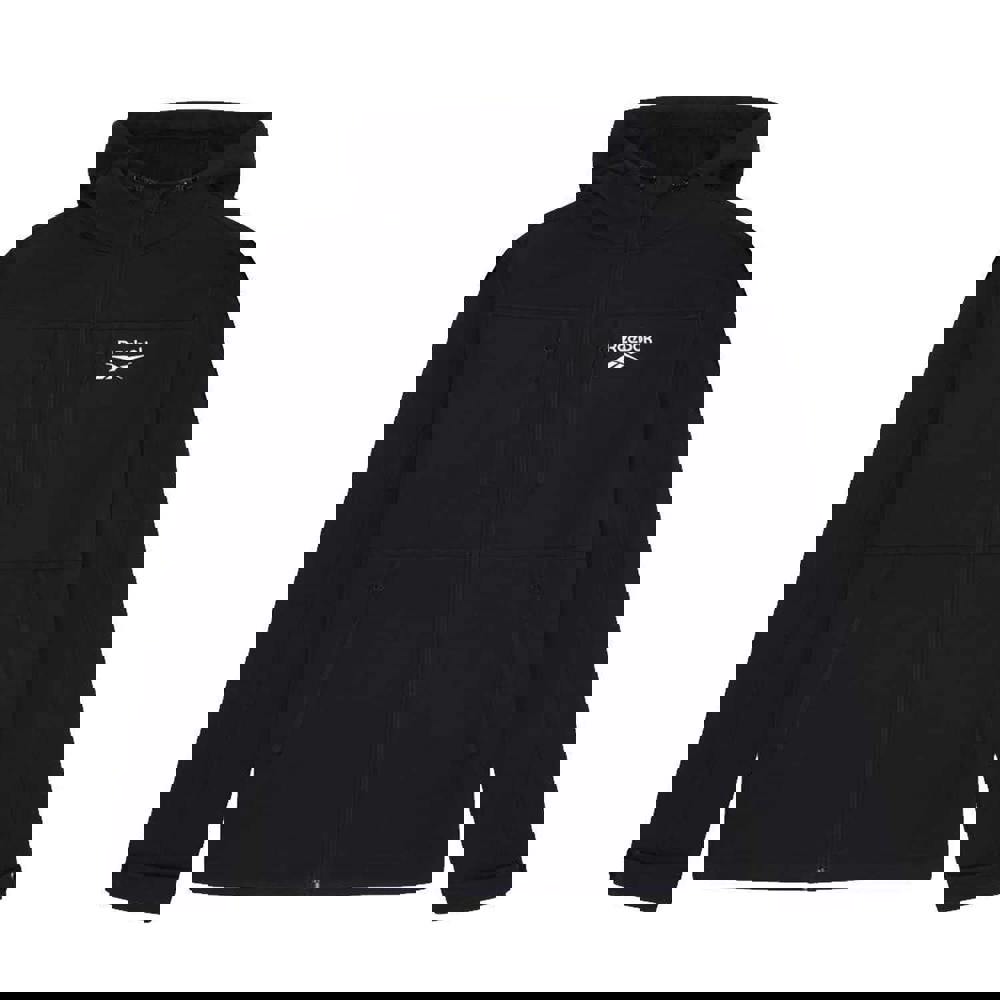 This soft shell jacket from Reebok is made from 94% polyester and 6% spandex, with a fleece lining. It has a plain design with a logo and a hooded neckline for a clean, practical finish. Long sleeves and adjustable cuffs with touch fastening tabs provide a secure, adjustable feel.