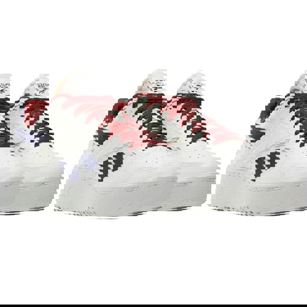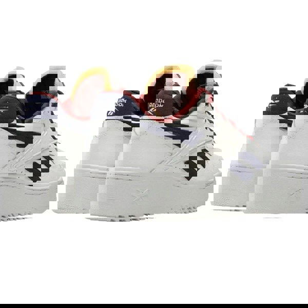 Reebok ATR Chill Leather basketball shoes in white/navy with a low-cut profile and flat sole. The upper is made from leather, paired with an Ortholite and synthetic lining. A rubber outsole completes the construction for everyday wear.