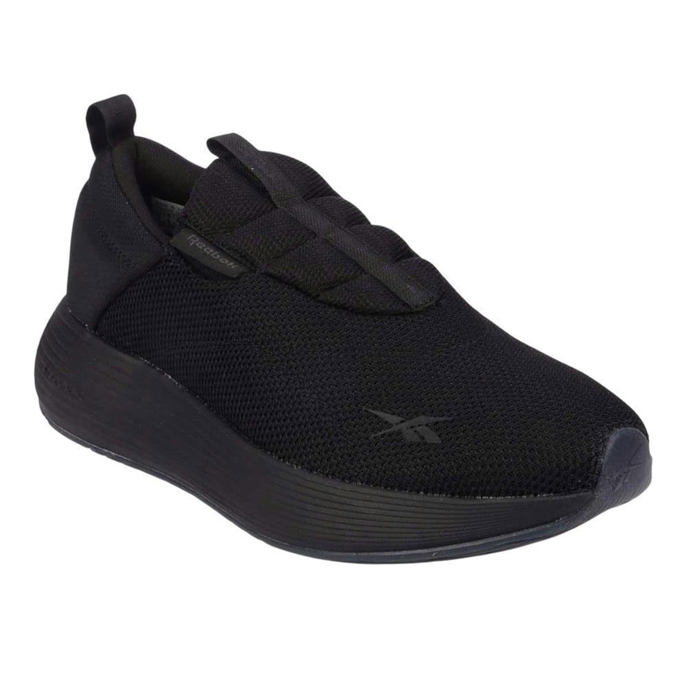 These Reebok unisex adult DMX Comfort slip-on trainers come in black and grey with a plain finish and logo detail. The low-cut profile is paired with a round toe and a slip-on fastening for a clean, easy-to-wear shape. A padded collar and pull tab add practical detailing, while the mid heel keeps the silhouette balanced.