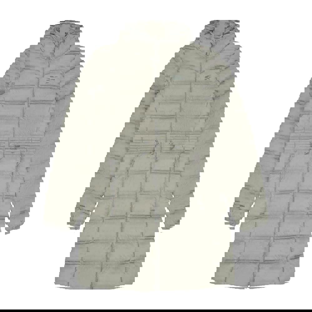 The Reebok Womens Glacier Shield Parka in sage is made from 100% nylon with a soft-touch fabric finish. This long, hooded parka has a quilted construction and long sleeves, finished with elasticated cuffs. A full zip fastening runs through the front, with two front zip pockets for secure storage.