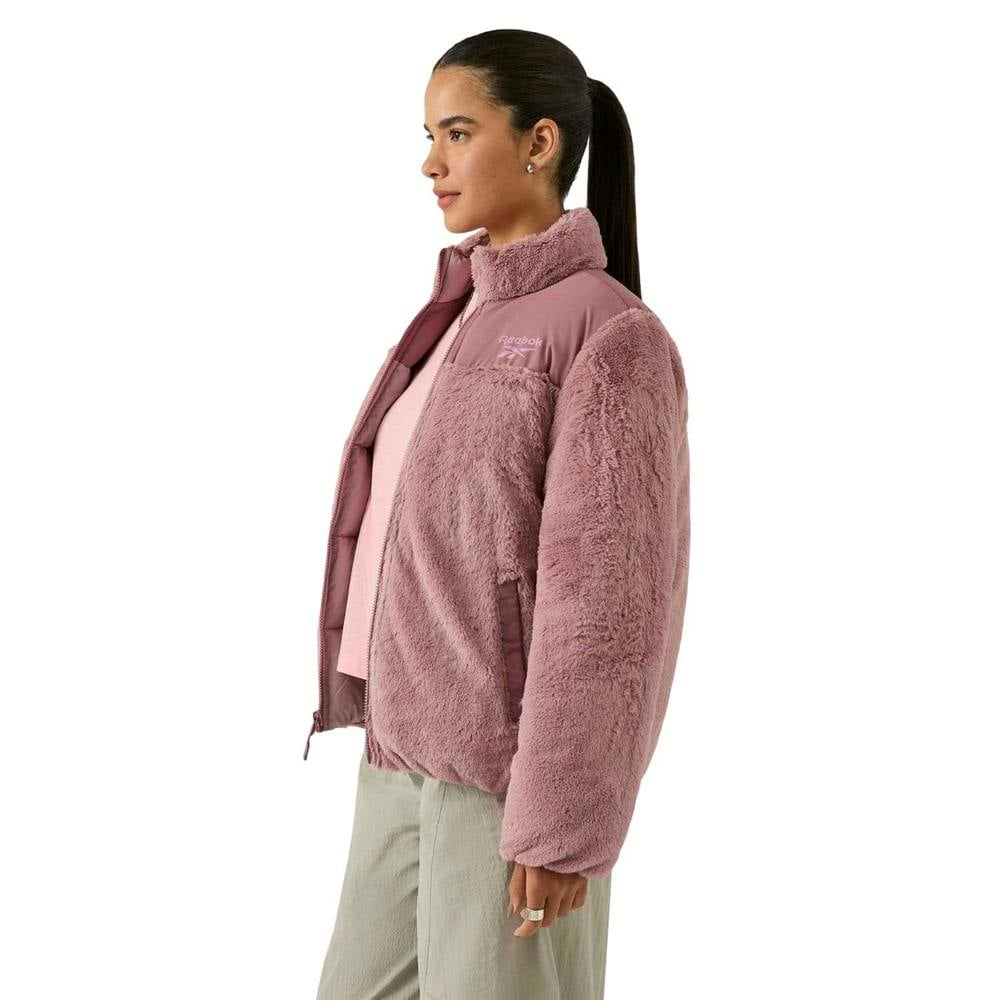This Reebok women’s reversible puffer jacket comes in dusty rose and is made from 100% polyester with a plush finish and sherpa fabric. The insulated, quilted construction is paired with a standing collar and long sleeves for a structured outerwear shape. A full zip fastening runs through the front, with a zip detail and two front pockets for everyday storage.