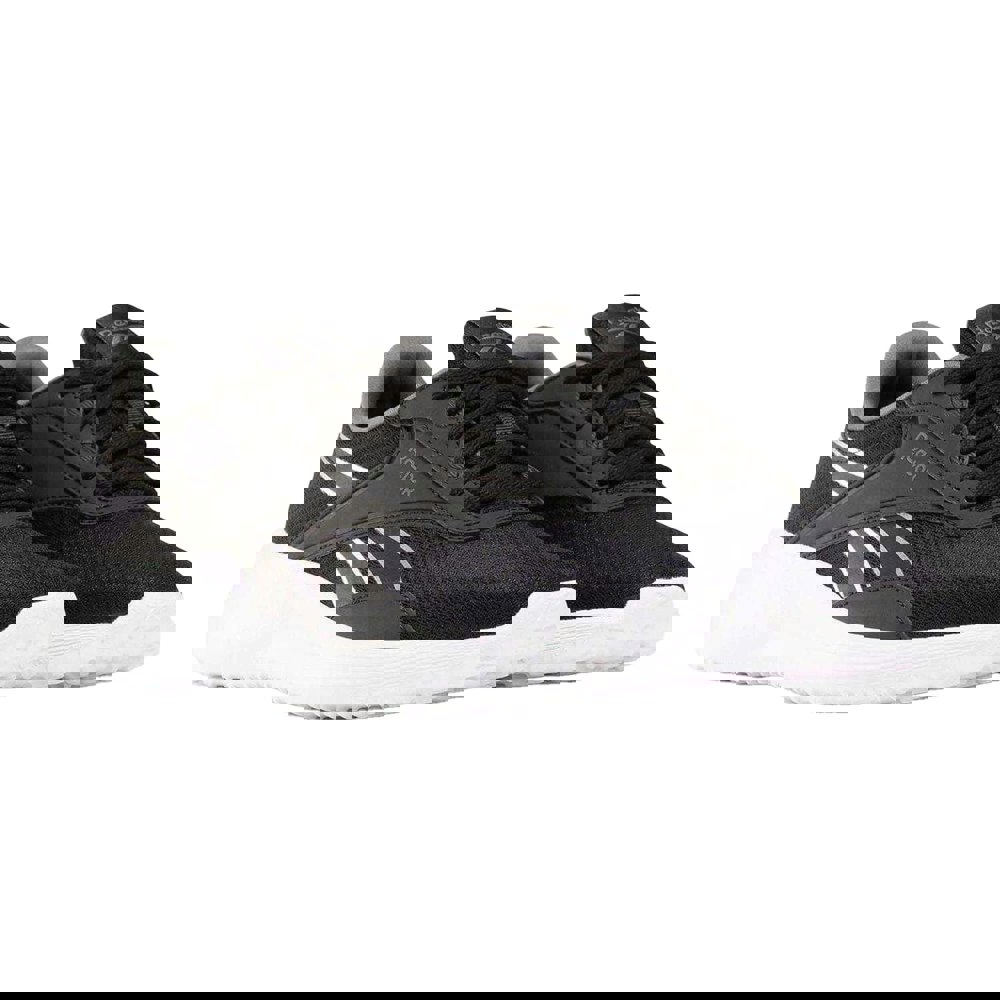 These Reebok Lite 4 trainers come in a black and white contrast design with logo detailing. The upper combines mesh and synthetic materials, paired with a textile lining for a clean, low-cut profile. A round toe and lace-up fastening keep the look classic and secure, while six eyelets complete the front lacing.