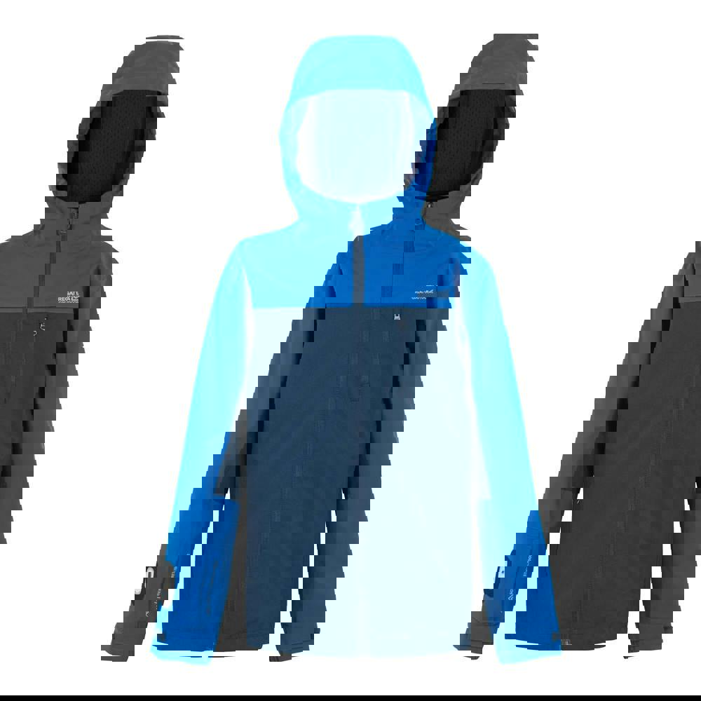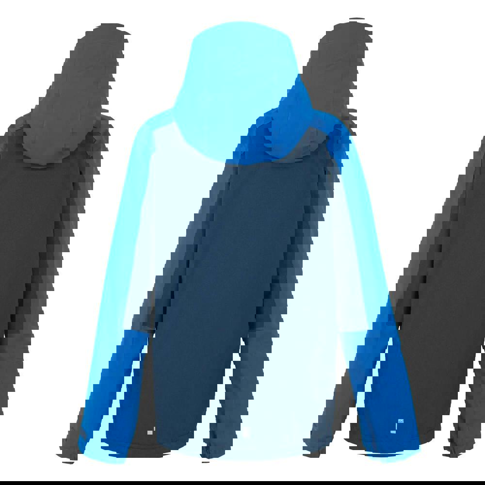 This boys’ Trekktain 3 in 1 jacket from Regatta comes in Moonlight Denim and Snorkel Blue with contrast panels, logo detailing and reflective elements. The outer uses stretch fabric (165gsm) with a durable water repellent finish, Isotex 15000 technology and taped seams. It is breathable (15000g/m²/24hrs), lightweight, waterproof and windproof.