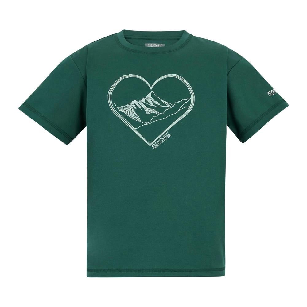 In a Mediterranean green finish, the Regatta Aria Heart T-shirt brings a graphic look to everyday dressing. Made from a blend of polyester and recycled polyester, it has a soft handle and uses breathable, moisture wicking and quick dry fabric technology.